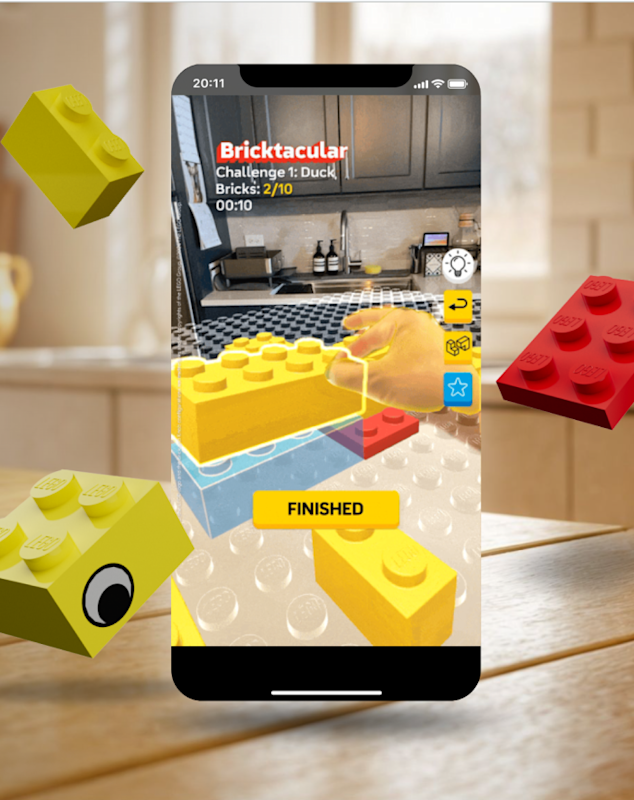 In this always-on AR game, players build a series of objects with AR LEGO bricks, for time. You must complete builds to unlock new challenges and levels.